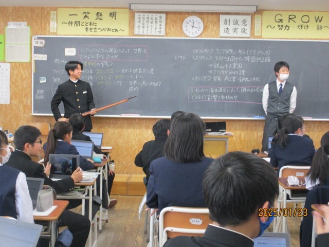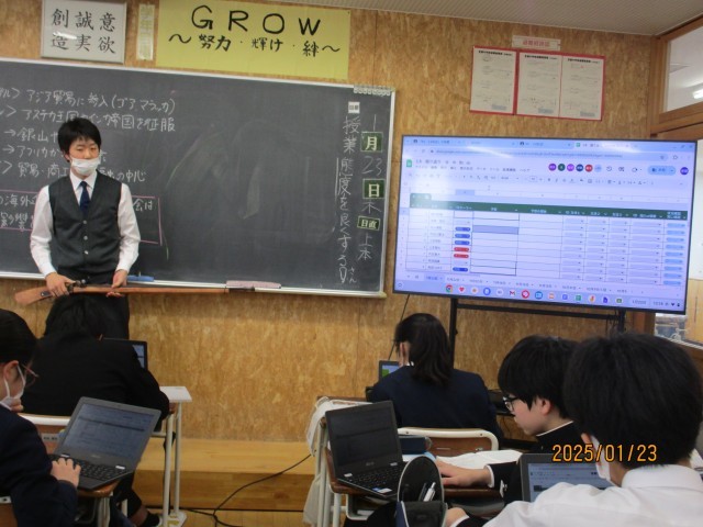 鉄砲やキリスト教が伝来したことによる影響を考えています。
