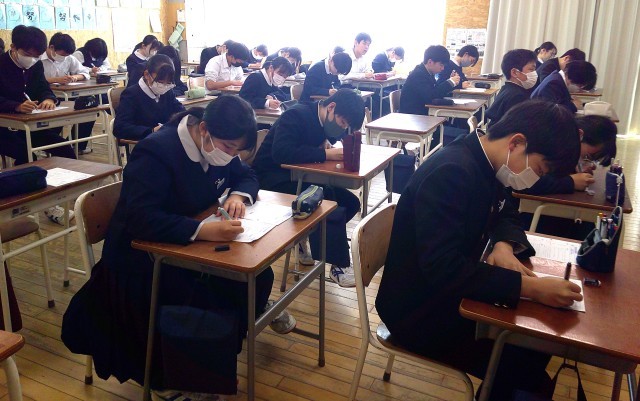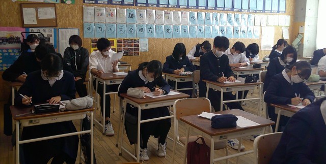 3-Cの理科の授業風景です。単元の確認問題に挑戦しています。学習に集中している姿、さすがです!