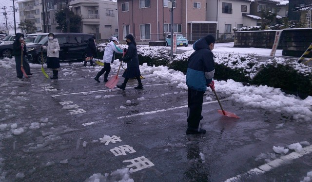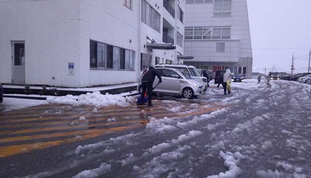 おはようございます。雪の朝となりました。今朝は、早くから1-Cの生徒が除雪をしてくれました。水分を含んだ重い雪でしたが、スコップを手に一生懸命雪かきをしてくれました。生徒の皆さん、ありがとうございました!
