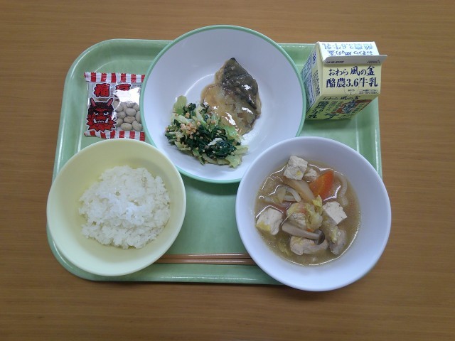 今日は立春。一足遅れですが、節分豆が提供されました。みなさんは、家で豆まきをしましたか?