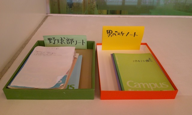 野球部と男子バスケットボール部の「部活動ノート」です。日々の努力を続けていくことが、いずれ大きな力となります。頑張ろうね、芝中生!