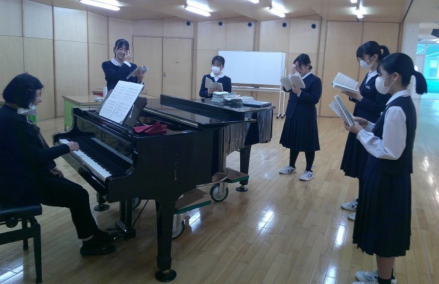 3-Aの音楽の授業風景です。卒業式で歌う「正解」の練習をしています。生徒は歌詞の意味を感じながら、練習しています。