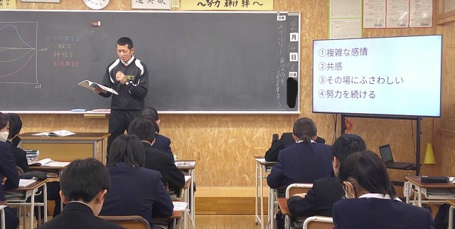 心の健康 1-A保健 公開日 2025/02/04 更新日 2025/02/04 芝園の一日 2月4日(火) 1限 1-Aの保健体育の授業風景です。今日は「心の健康」について学習しています。みんな、自分事として考えています。