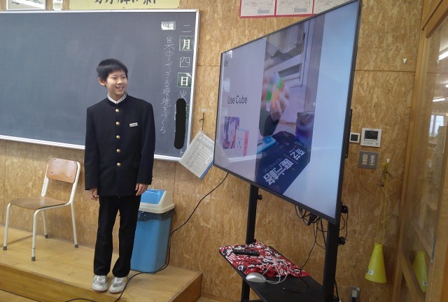 My HERO 1-C英語 公開日 2025/02/04 更新日 2025/02/04 芝園の一日 2月4日(火) 1限 1-Cの英語の授業風景です。「My HERO」という課題で、自分にとってのHEROについて調べ、スライドにまとめたことを英語でプレゼンしています。ルービックキューブのチャンピオンについて調べた生徒は、自分のチャレンジしている動画もアップするなど、たいへん興味深いプレゼンでした。すごいぞ、1年生!