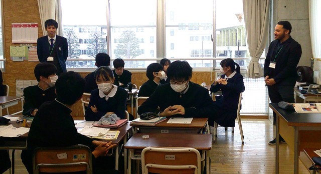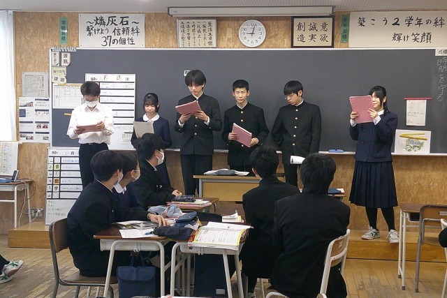 2-Cの英語の授業風景です。グループで考えたことを、英語で発表しています。