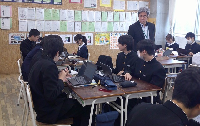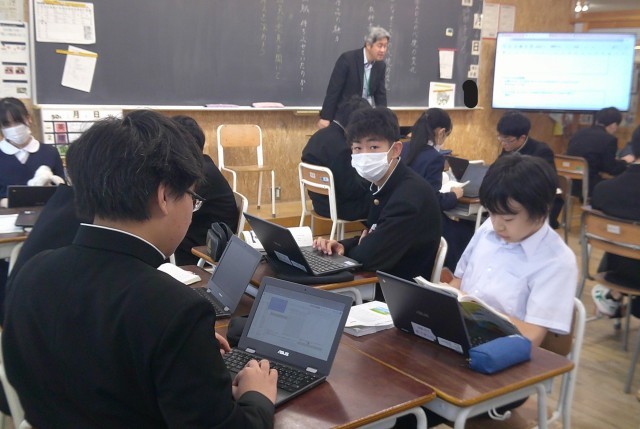 走れメロス 2-C国語 公開日 2025/02/04 更新日 2025/02/04 芝園の一日 2月4日(火) 3限 2-Cの国語の授業風景です。「走れメロス」を読みとって、理解したことや感想などをシートに打ち込んでいます。