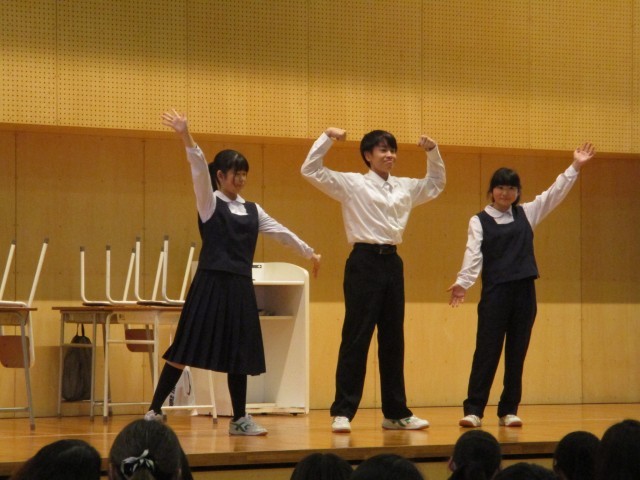 生徒会から、学校生活の流れについて、劇で紹介がありました。