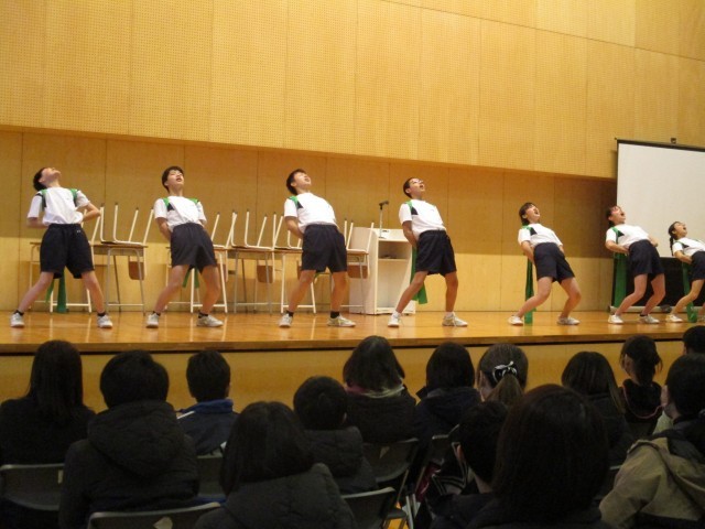 運動会の応援合戦の様子を再現した発表では、迫力のあるエールが体育館に響きわたりました。