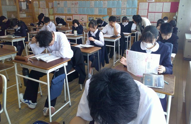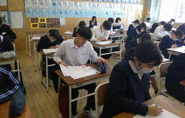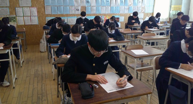 3年生の授業風景です。受験に向けて、プリントやワーク等で確認をしています。自分のペースで、自分に合った学習を進めています。ものすごい集中力!頑張ってるよ、3年生。