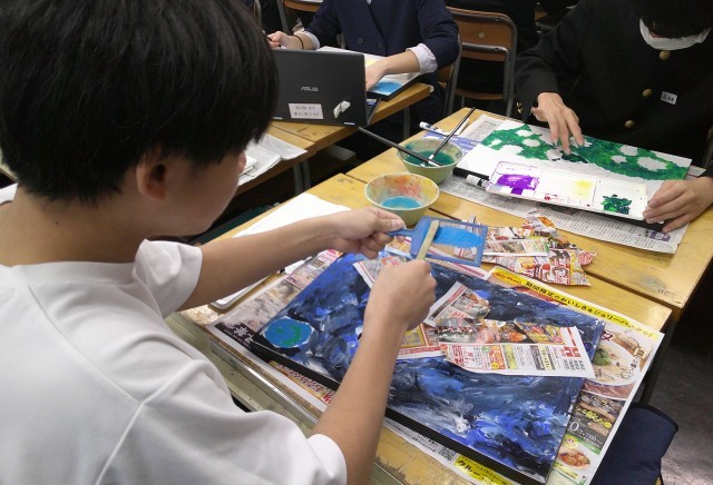 様々な技法で2 2-C美術 公開日 2025/02/17 更新日 2025/02/17 芝園の一日 2月17日(月) 1限 ちぎり絵、スパッタリング、フィンガーペインティングなど、様々な技法を凝らして制作に励んでいます。