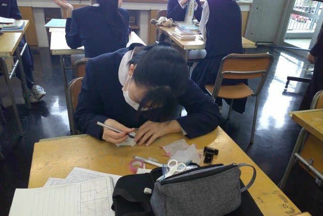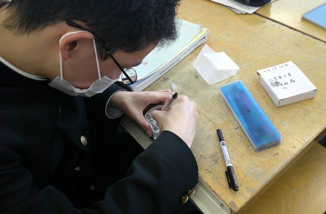 3-Bの美術の授業風景です。卒業制作のペーパーウェイトもほぼ完成。ラストスパートです。