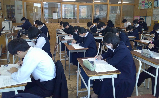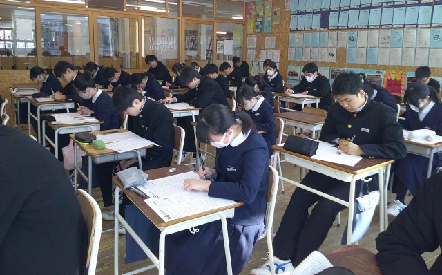 3年生は、いよいよ来週に迫った県立高校一般選抜に向けてラストスパートです。集中している姿、ステキです。みんなで頑張ろう!という雰囲気をつくっていこうね。いいぞ、3年生!