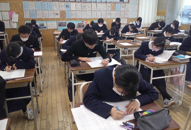 3年生の授業風景です。どのクラスも、一人一人が集中して課題に取り組んでいます。