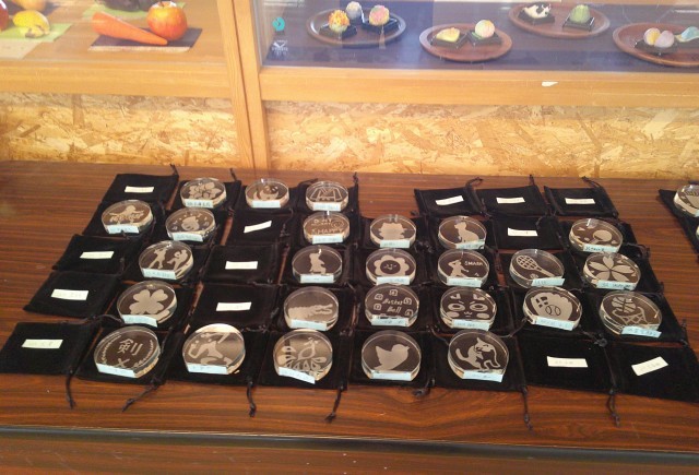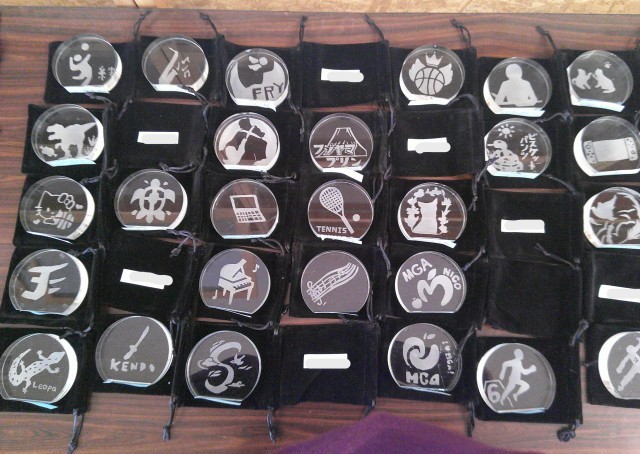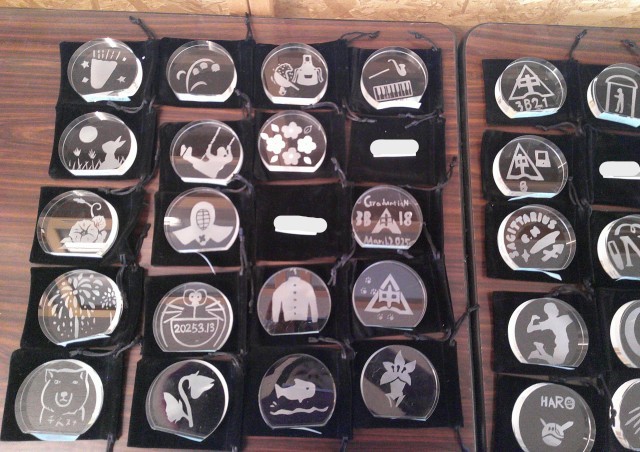美術室前には、3年生の卒業制作のペーパーウェイトが展示してあります。