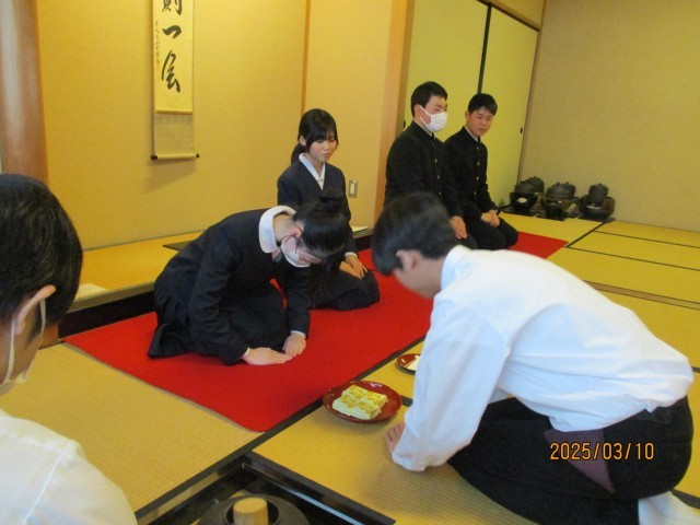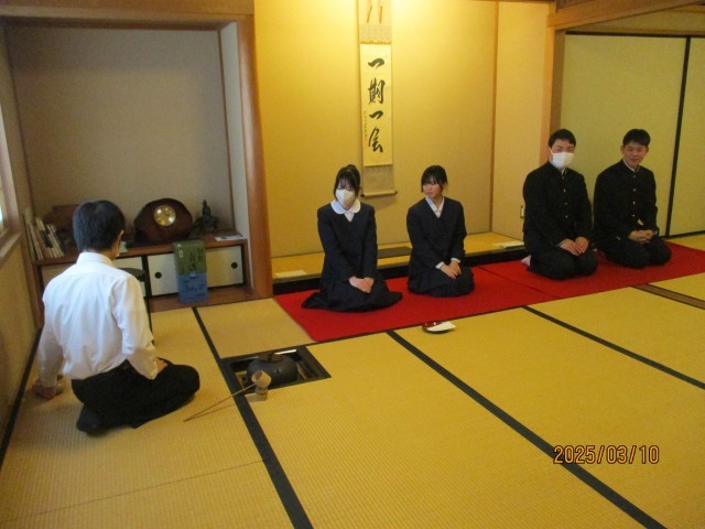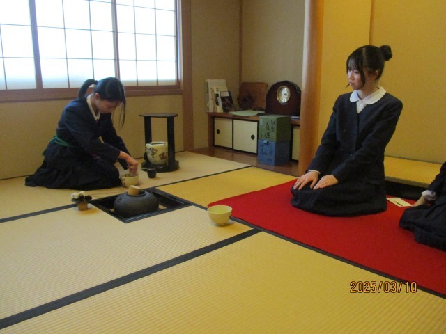 部活動お別れ会 茶道部(その1) 公開日 2025/03/10 更新日 2025/03/10 芝園の一日 3月10日(月)「ありがとう茶会」を行うために、計画を立てて、練習してきました。心をこめてお茶を点て、先輩をもてなしました。