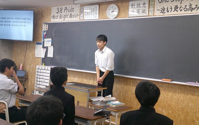 陸上競技部です。先輩からのメッセージを、後輩は背筋を伸ばして聞いています。