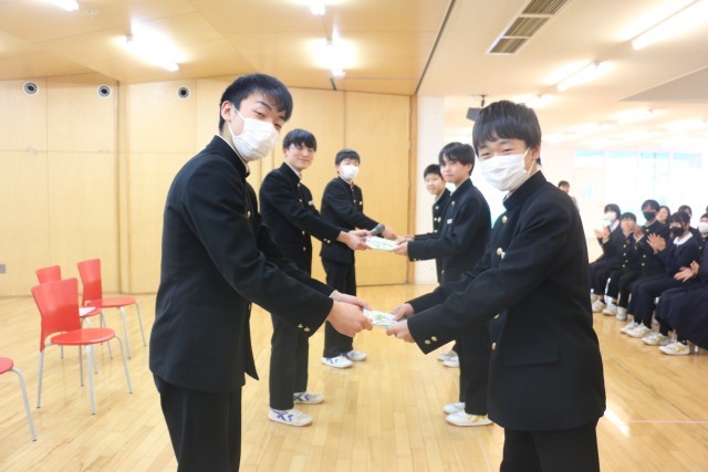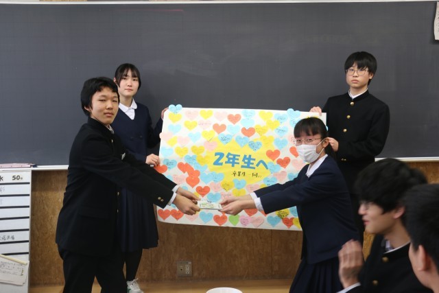 3年生から1,2年生へのメッセージを渡しました。芝園中学校を、頼みますね!