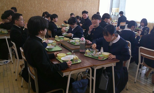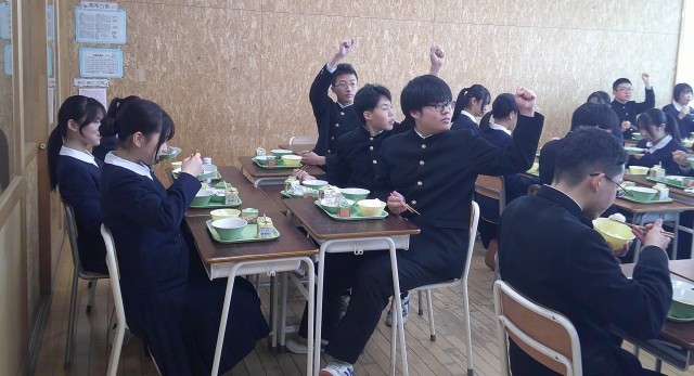 3-Bの給食風景です。最後の日も「牛乳ジャンケン」です!