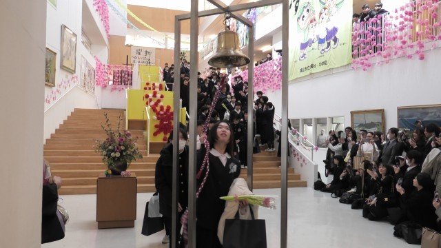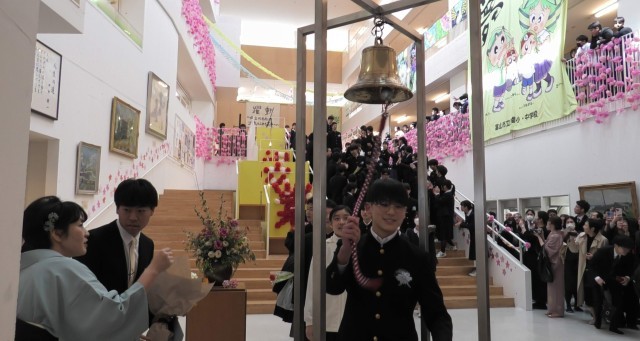 伝統の自立の鐘を鳴らして、巣立ちました。3年生のこれからに幸あれ!