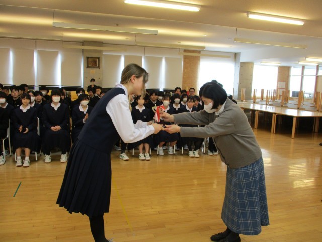 給食準備の表彰があり、3月の月間1位は2-A、年間大賞は2-Cでした。