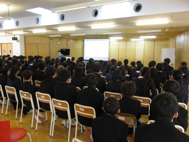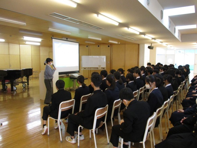 生徒指導主事からわくわくする学校にするために望むことの講話のあと、学年担当者の自己紹介、生活・学習についての説明がありました。落ち着いた態度で真剣に話を聞くとともに、話し合い活動等にもしっかりと参加することができました。