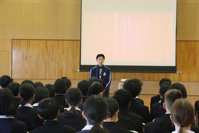 2、3年生は日頃の部活の様子や成果を伝え、1年生は各部の紹介に目を輝かせていました。