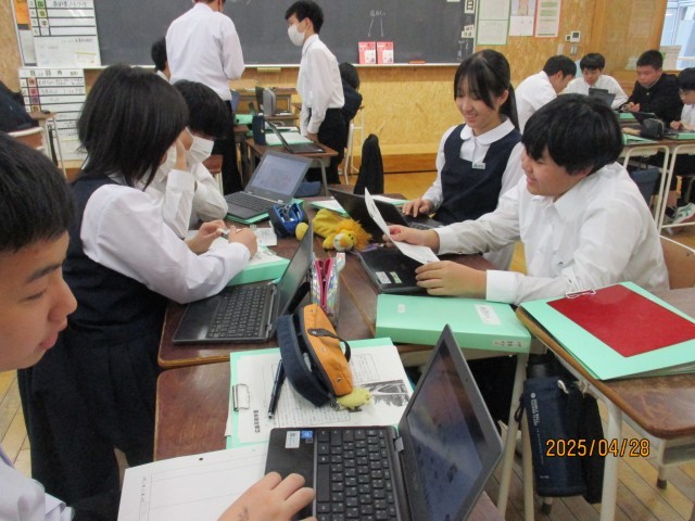 今日の学活では、修学旅行に向けて万博の見学計画や移動車内の座席を班やクラスで話し合って決めました。