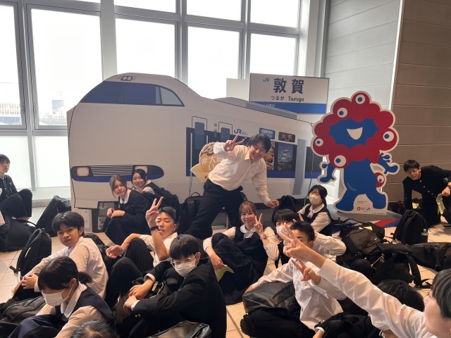 敦賀駅で新幹線から特急への乗り換えのため、待機しています。