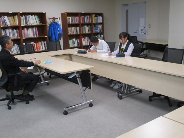 オリエンテーションで職員の方から施設の概要や業務についての説明を受けています。