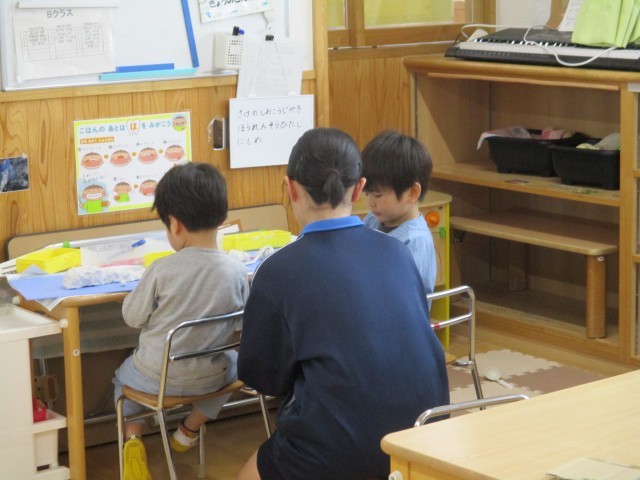緊張しながらも子供たちのお世話に取り組んでいます。