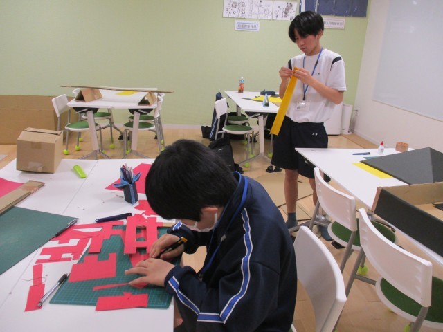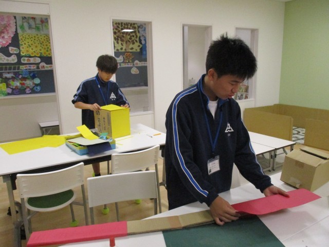 2学年 14歳の挑戦:6月4日(水)富山市立中央児童館 公開日 2025/06/04 更新日 2025/06/04 芝園の一日 月ごとに変わる展示物を作成させてもらっていました。4人で作る7月の展示物は、オリジナルの御神輿です。完成が楽しみです。