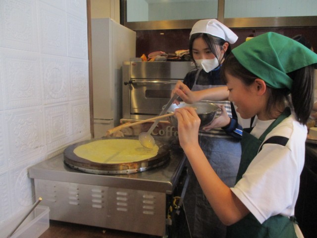 ソフトクリームやクレープ作りを体験しました。何度も繰り返すことで、見た目も味もばっちりなお菓子を作ることができました。