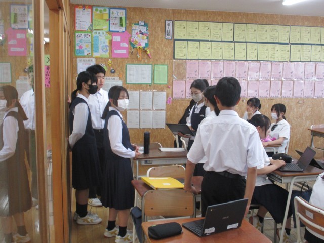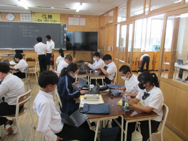 2学年 14歳の挑戦:6月9日(月) 事後学習 公開日 2025/06/09 更新日 2025/06/09 芝園の一日 今日から通常の授業が再開しました。 事業所の皆様へのお礼状を作成した後、 先週までの「14歳の挑戦」で学んだことをプレぜーテーションソフトでまとめる活動を行っています。