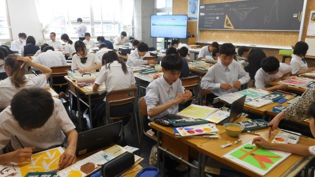 【右側】 美術科 全員が自分の作品の完成に向けて真剣に取り組んでいました!