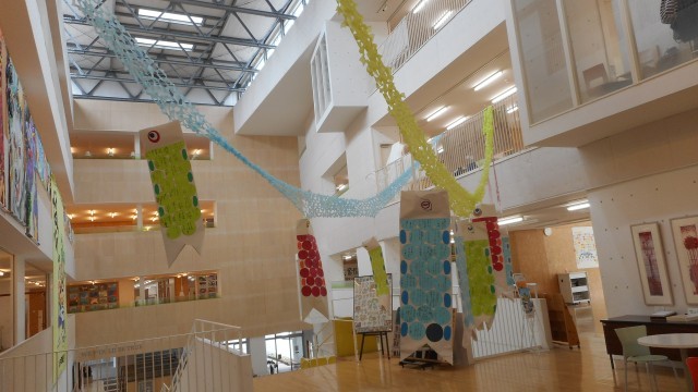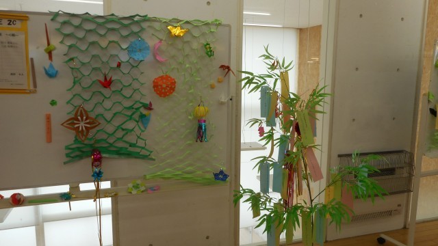 七夕が近いせいか、願いを込めて書いた短冊が学年のフロアや2階のフロアに飾ってありました。