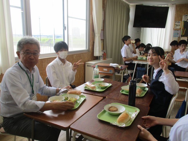 金曜日の給食では、校長先生がゲストとして来てくださいました!