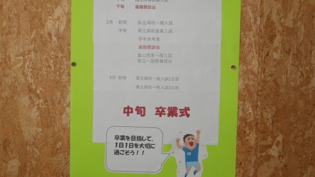 隣には、卒業式までの大まかな日程が記されていました。