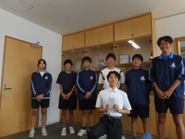 本日、今週末県選に出場する陸上競技部の激励会を行い、奨学会からの激励費を渡させてもらいました。