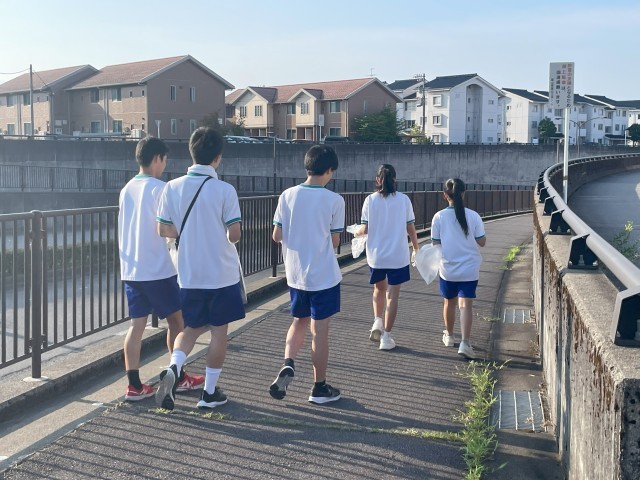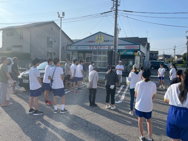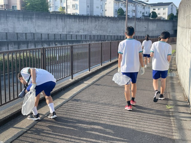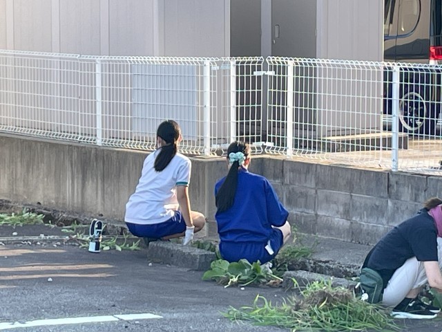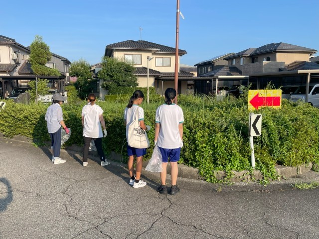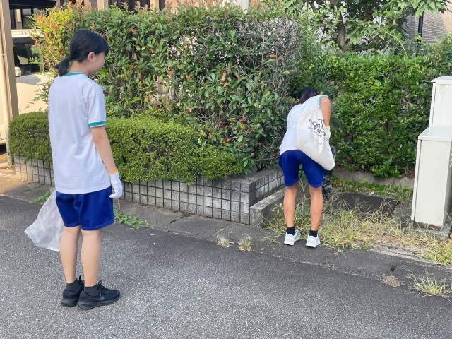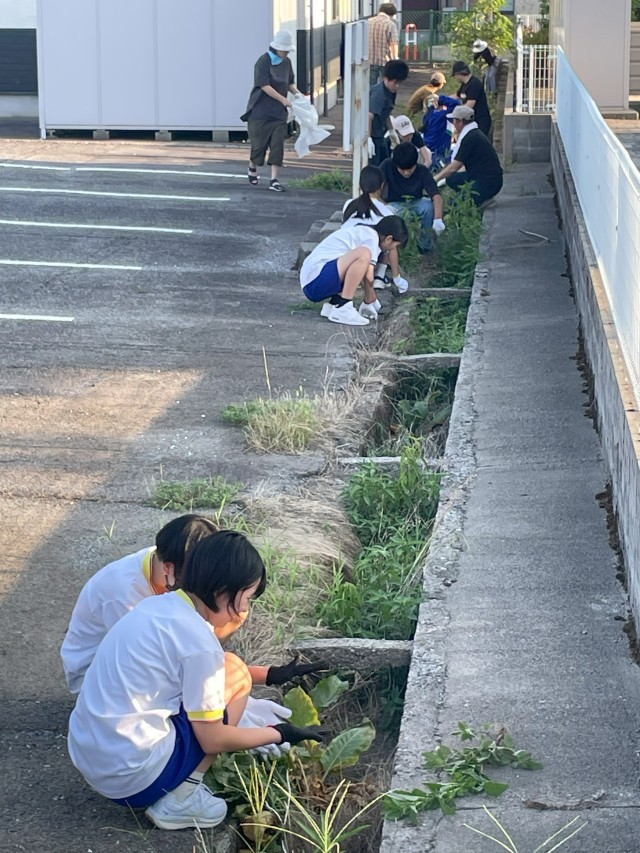 町内の方から説明をうけ、除草やゴミ拾いに励んでいました。