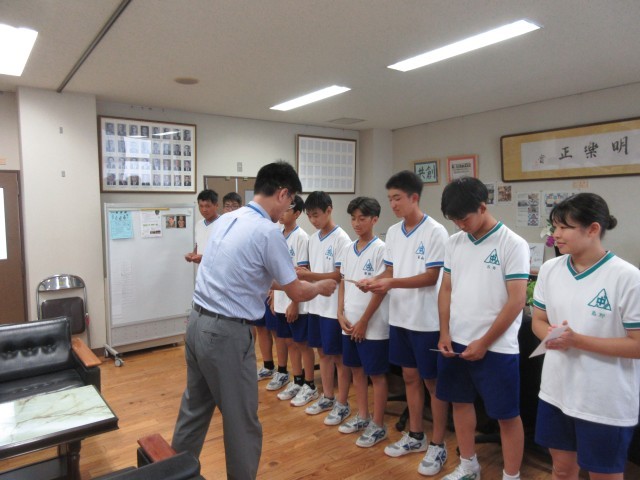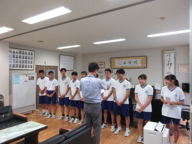 本日、校長室にて夏休み中に開催された、第48回全国JOCジュニアオリンピックカップ夏季水泳競技大会アーティスティックスイミング競技、日本