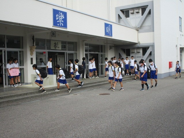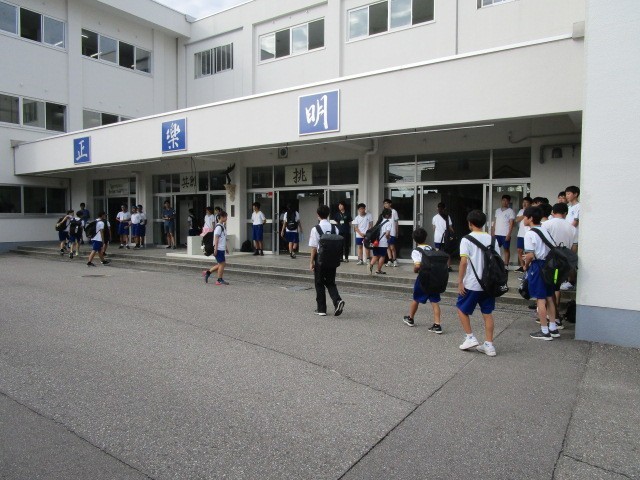 生徒玄関では、毎日参加者が入れ替わり、「1000人でつなごう!あいさつバトン」が行われています。