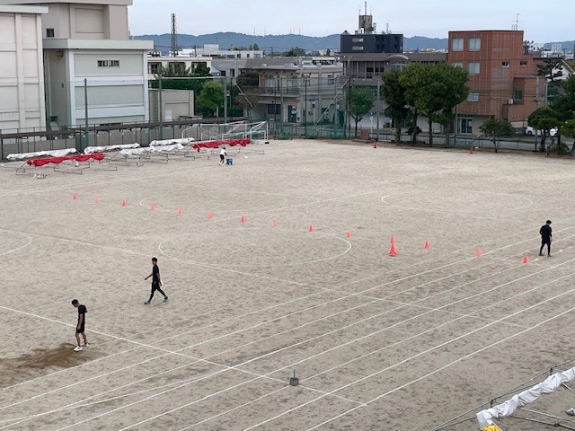 7時前から、先生たちもグランドコンディションを最高のものにしたいと頑張っています。