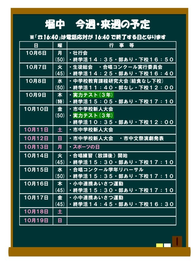 10月6日(月)〜10月19日(日)の予定
