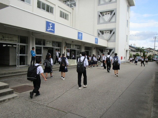 今朝から台風の影響か、一日にかけて風が強いようです。登下校の際にも、周囲の状況に気を付けながら、安全に十分気を付けましょう。また、明日は富山市中学校新人大会となりますので、1・2年生の運動部生徒の多くは、各会場での活動になります。行き来の安全、会場でのルールやマナー等、日頃の「堀川プライド」を発揮して参加しましょう、そして、競技での健闘を祈ります!