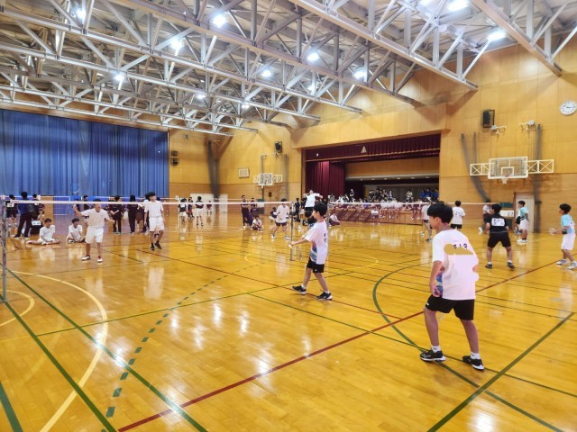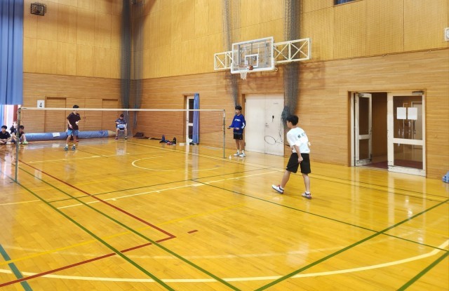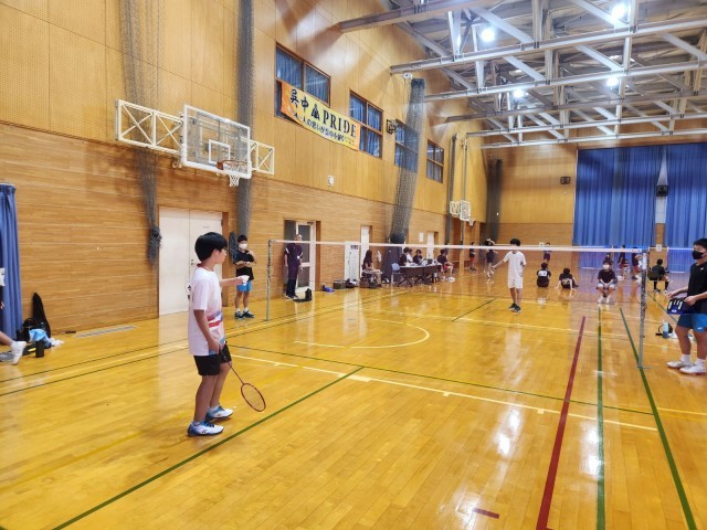 男子バドミントン部は呉羽中学校体育館で大会に臨んでいます。