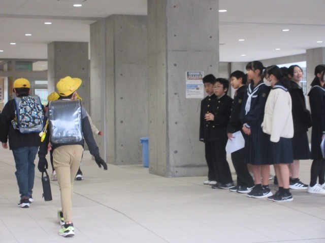 中学生が出身の小学校へ出向き、「小中連携あいさつ運動」が行われました。