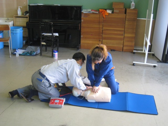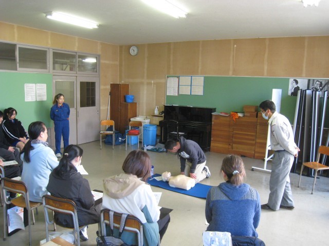 TH会生涯学習委員会では、富山市消防局から救命士の方を講師にお招きし、救命講習会として心肺蘇生法とAEDを使った救急蘇生法を体験しました。胸骨圧迫の重要性や、AED使用時の注意点などの説明を聞き、納得しながら繰り返し練習しました。普通救命講習修了証もいただき、今は、緊急時に少しでも人の役に立てそうな気がしています。