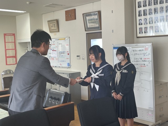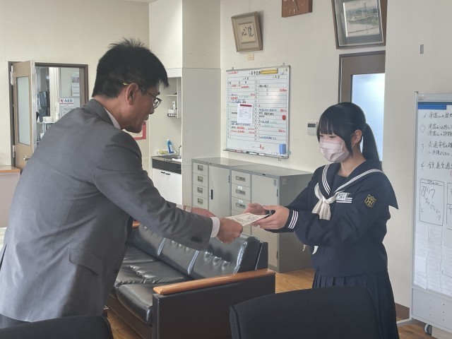 11月27日(木)お昼の時間に、校長室にて第1回「堀川プライド賞」の授賞式を行いました。
