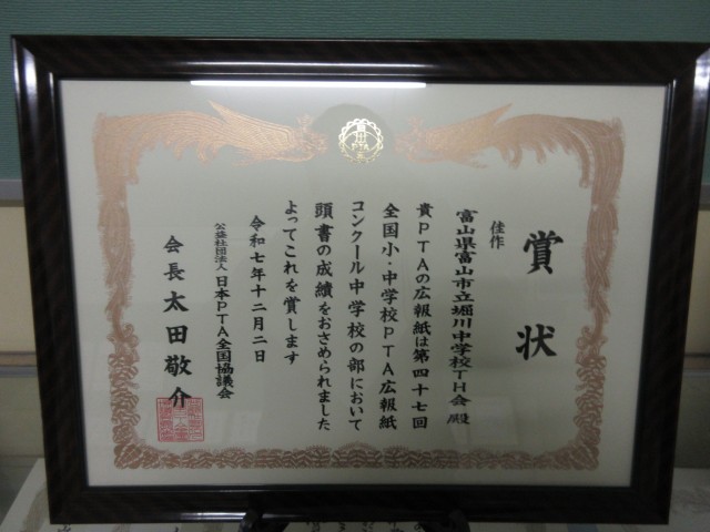 本校の広報紙が、第47回全国小・中学校PTA広報紙コンクールで佳作に入賞しました。