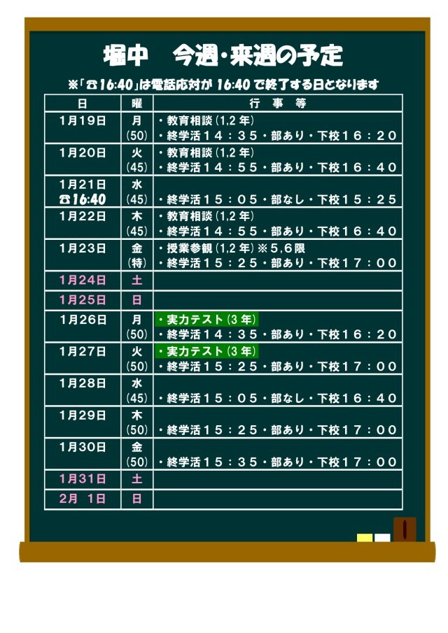1月19日(月)〜2月1日(日)の予定